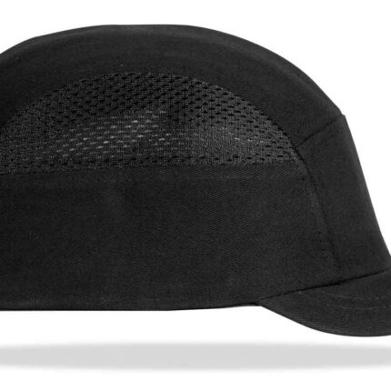 Mod. “BUMPER PRO”. Gorra de protección anti golpes con rejillas de ventilación lateral. Color negro visera corta (3 centímetros).