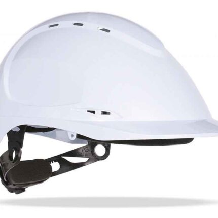 Mod. “THOR (Ventilado)”. Casco de protección para la industria ventilado en color blanco, cierre ruleta, arnés textil 6 puntos.
