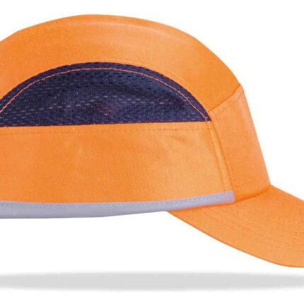 Mod. “BUMPER PRO”. Gorra de protección anti golpes con rejillas de ventilación lateral. Color Naranja Alta Visibilidad con bandas reflectantes. BUMPER PRO