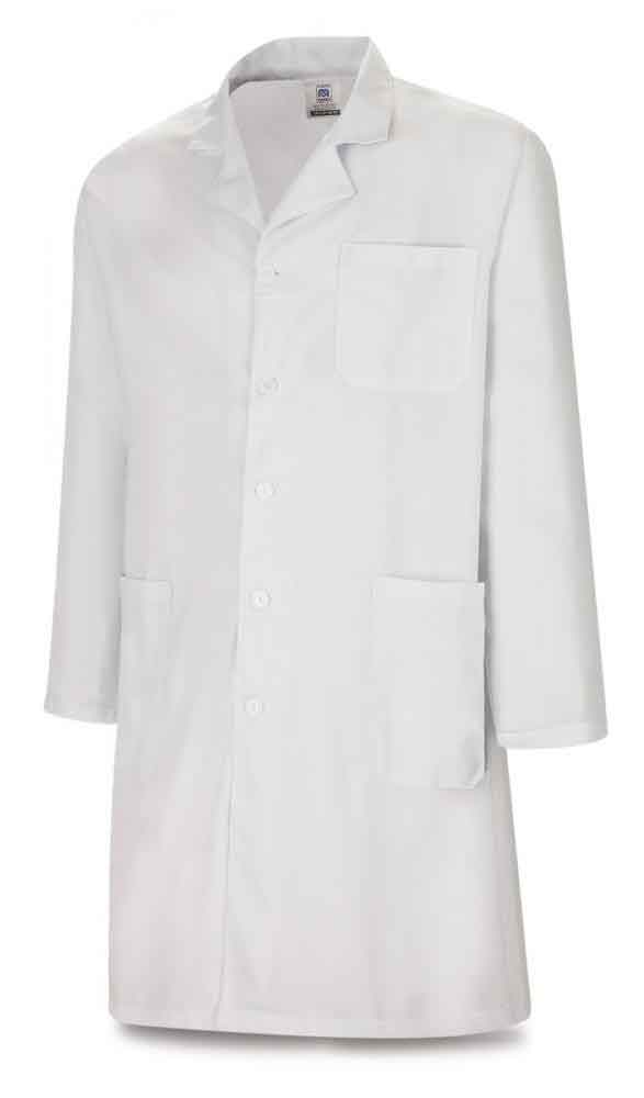 Bata Unisex con cuello de solapa, fabricada con tejido de 200 gr/m2. 1 bolsillo de plastrón en pecho y 2 a cadera.