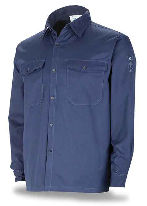 Camisa ignífuga y antiestática. Tejido con propiedades permanentes que no desaparecen con los lavados, muy ligera y confortable. Pictogramas y normas certificadas, grabados por transferencia de calor en color plata y retrorreflectante, en un lugar altamente visible de cara a facilitar las labores de cumplimiento de la prevención de riesgos laborales en las industrias metalúrgica, petroquímica y naval.