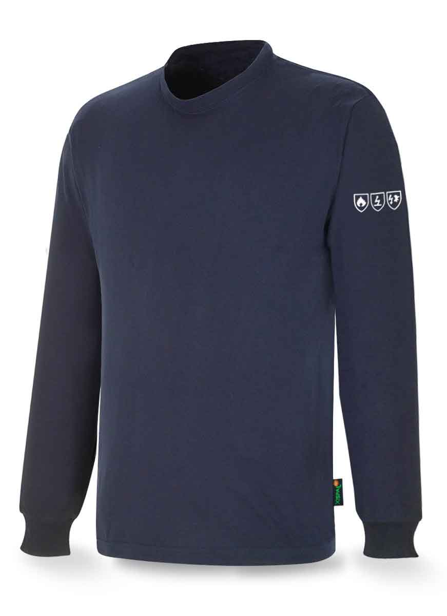 Camiseta confeccionada con tejido ignífugo y antiestático de 160 gr/m2 con pespuntes de Meta Aramida, resistente a los lavados. Tejido de punto Xispal RS®. Protección contra el calor, protección antiestática y también protege el arco eléctrico. Tejido ignífugo permanente. Cumple