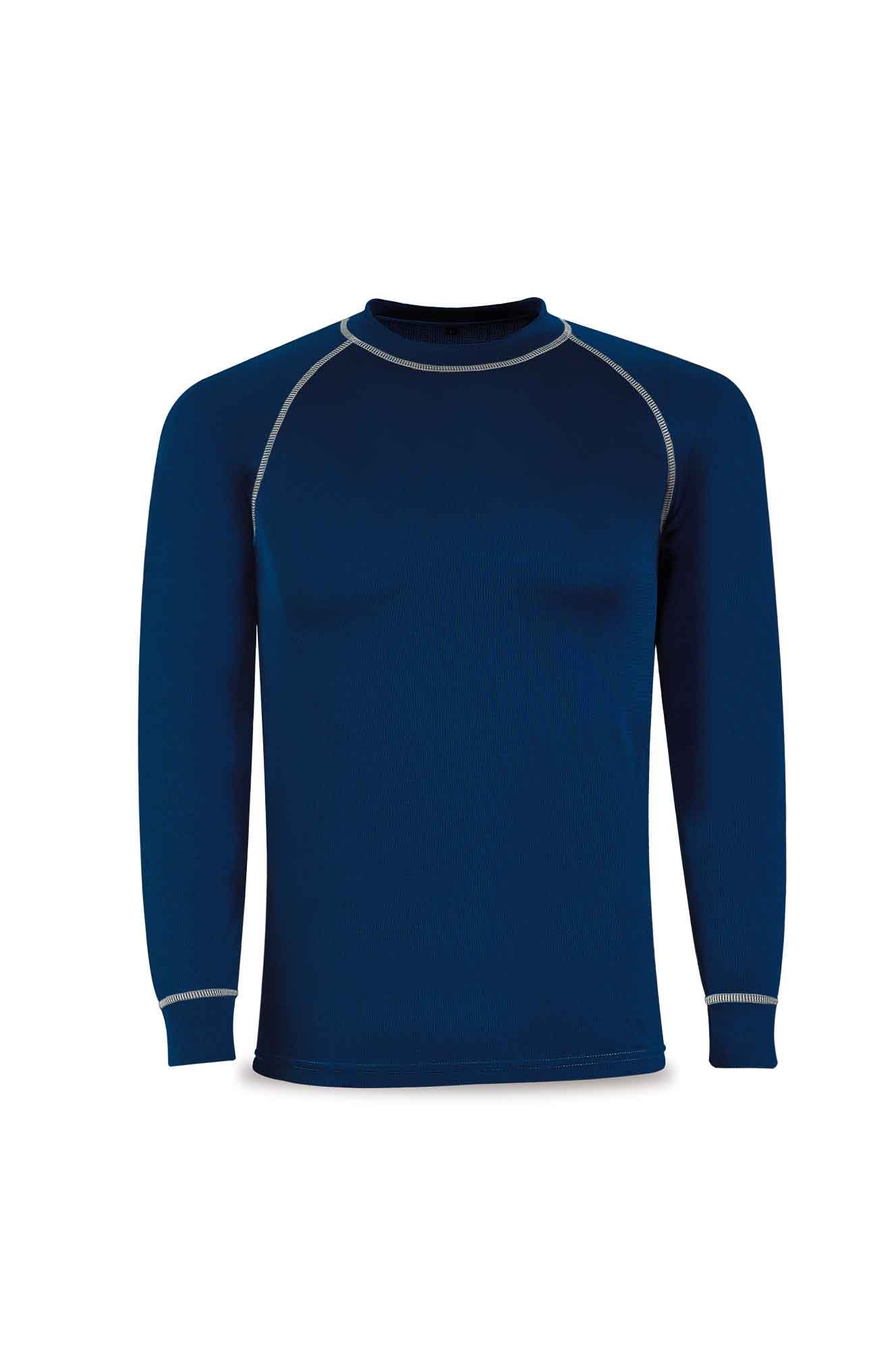 Camiseta Oxford/azul marino melange, muy ligera, fina y ajustable. Transpirable. Tejido a doble cara para triple función: entrega de calor, contención y eliminación si es en exceso.Composición: 100% Poliéster (180 gr./m2).
