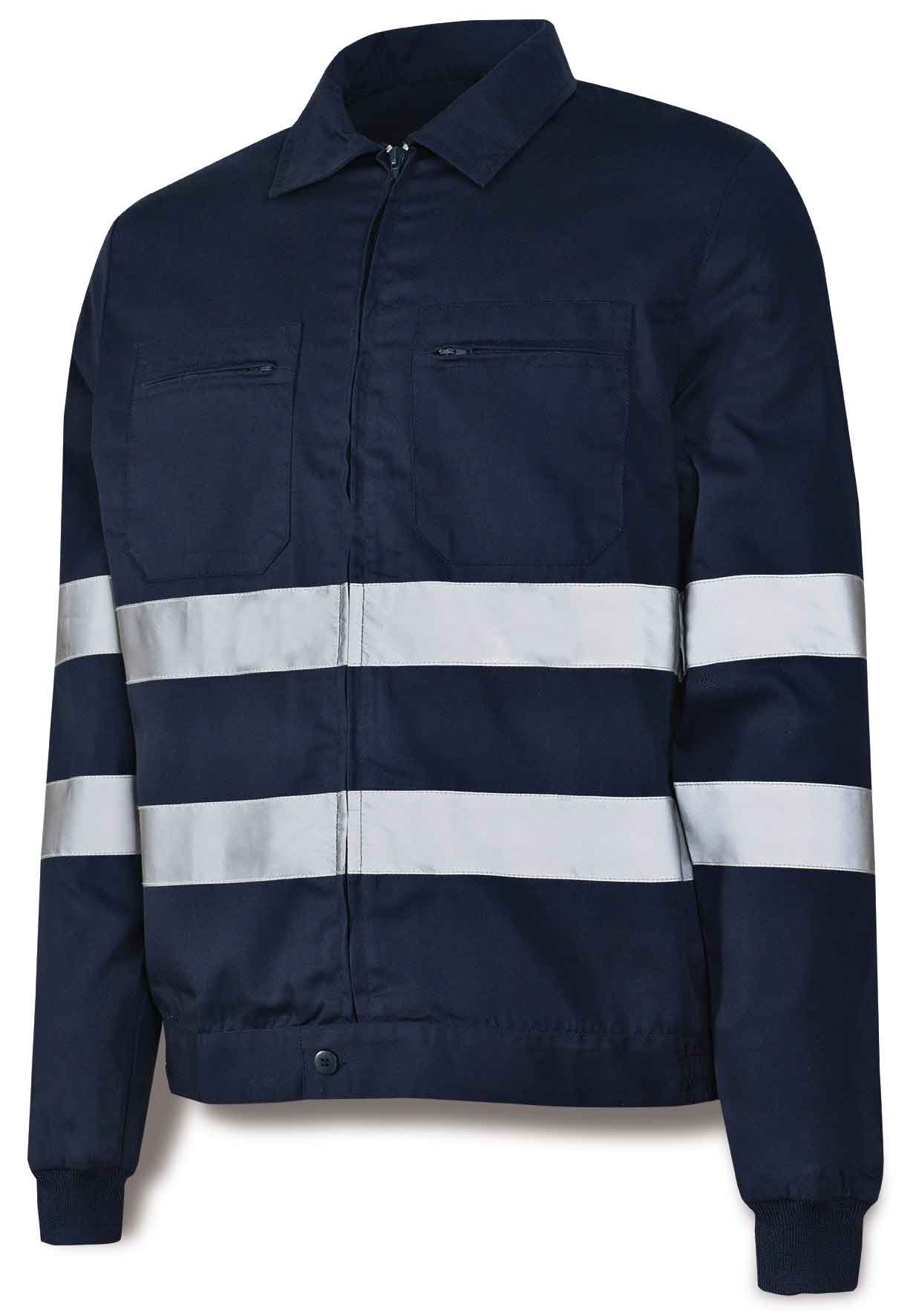 Chaqueta fabricada con tejido de 200 gr/m2. Bandas retrorreflectantes en torso y mangas. Ajuste a cadera con elásticos laterales, y 2 bolsillos en la prenda ubicados en pecho.Composición: 80% poliéster y 20% algodón.Masa laminar: 200 gr/m2.