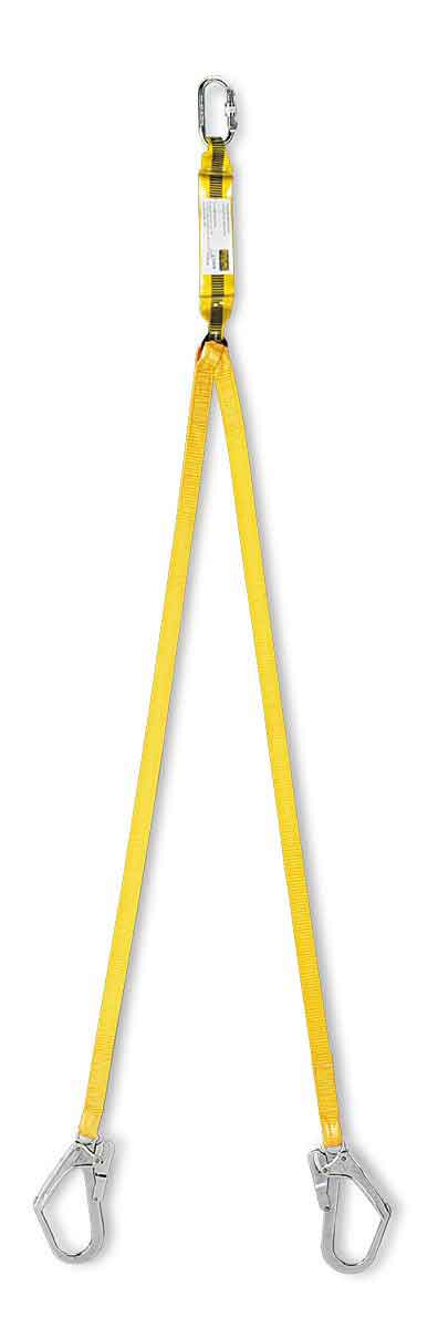 Características: Cinta en «Y» de 1.80 metros con absorbedor de energía, mosquetón de acero rosca y 2 mosquetones acero tipo gancho.