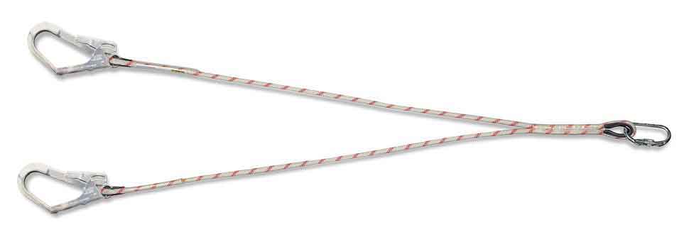 Características: Cuerda en «Y» de 12mmØ con mosquetón acero rosca y dos mosquetones tipo gancho.