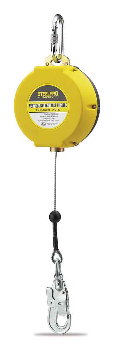 Mosquetón de acero y mosquetón anti-vueltas (evita la torsión y rotura del cable), con indicador de caída.