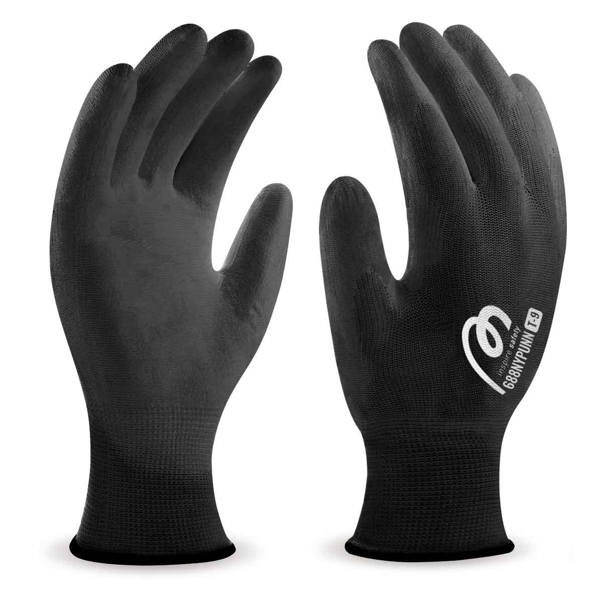 Inicio Guantes marcapl Guante de poliéster negro con recubrimiento de poliuretano negro.