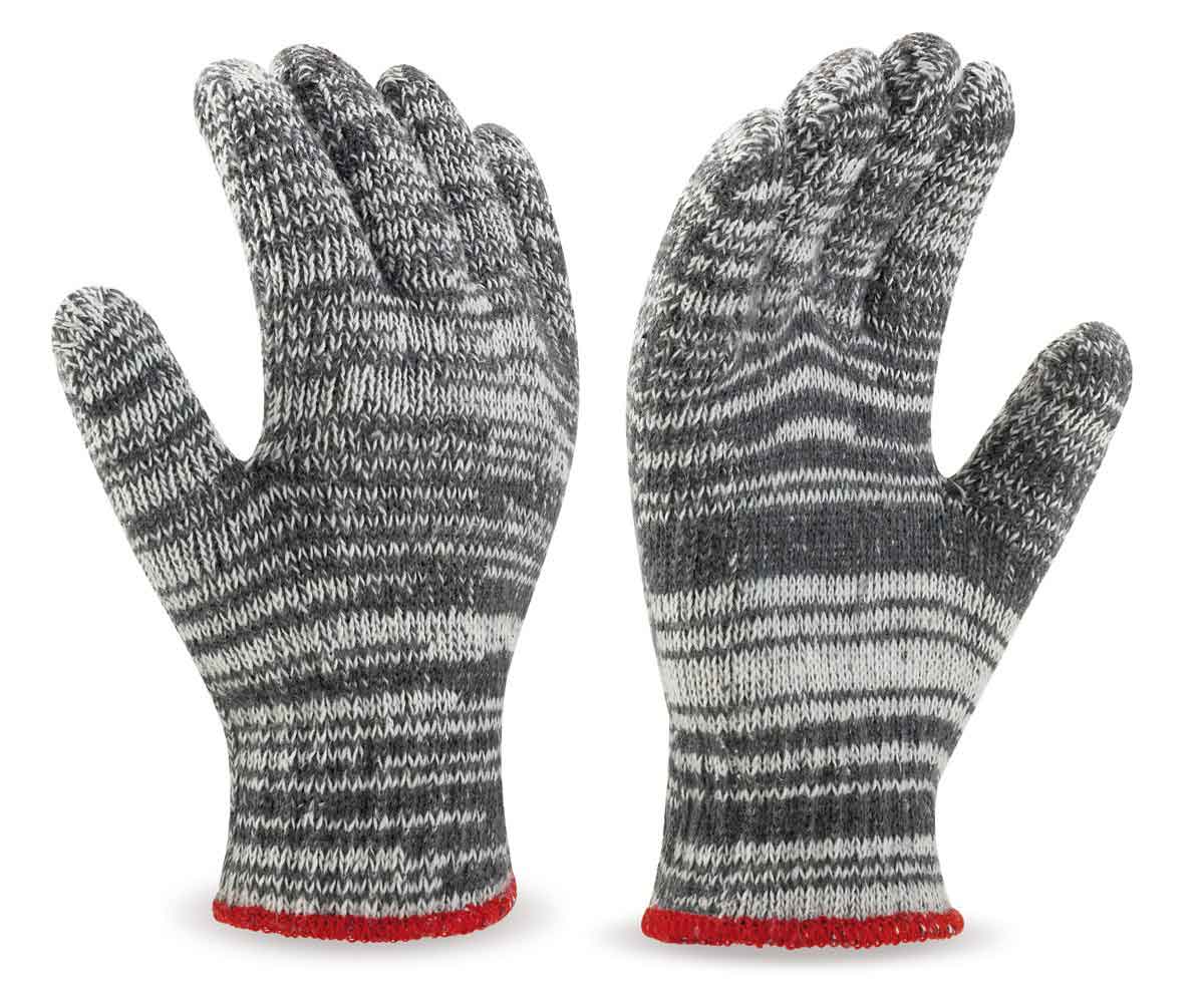 Guante tipo pescador de punto de algodón/poliéster gris/blanco puño elástico
