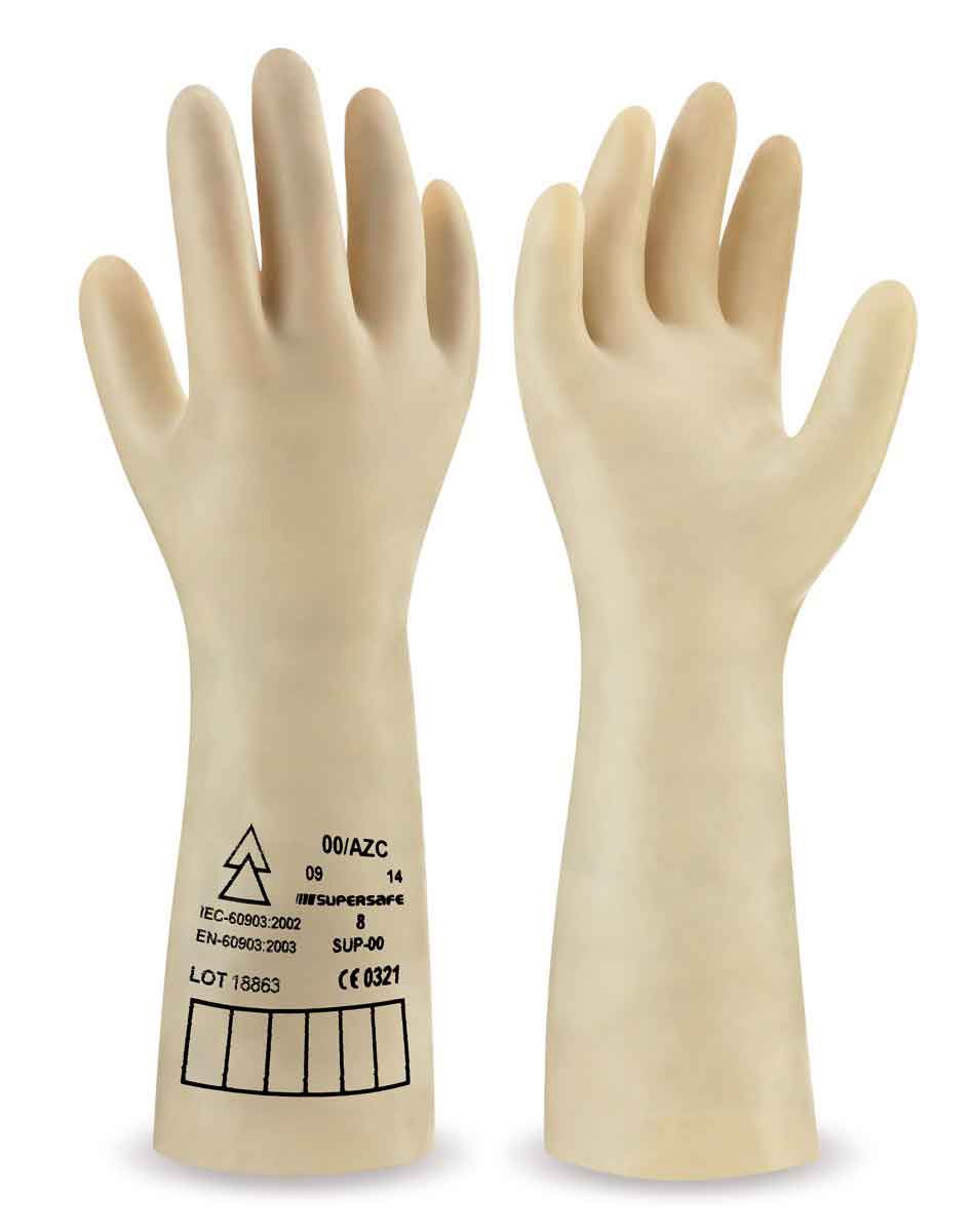 Guantes de látex natural sin soporte para trabajos eléctricos. CLASE 00 – 500V. Supersafe GP.