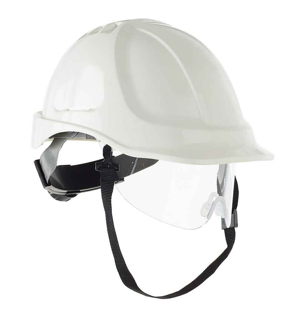 Visera corta y barbiquejo para trabajos en altura.