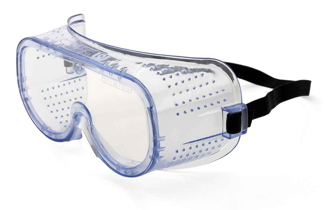 Características: Gafa Integral estructura de PVC y ocular de policarbonato para riesgos mecánicos (proyecciones, polvo grueso -4- y salpicaduras de metales fundidos y sólidos calientes -9-).