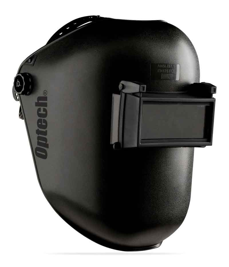 Pantalla para soldar con visor abatible tono 11 y arnés interior regulable con cierre de rosca para las chispas y radiaciones IR de los procesos de soldadura.