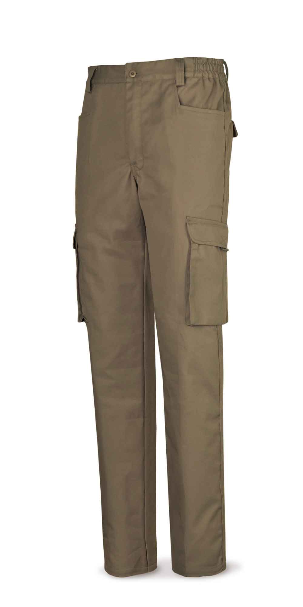 Pantalón fabricado con tejido de 245 gr/m2. 6 bolsillos: 2 a la cadera tipo western, 2 en perneras tipo cargo de fuelle y 2 traseros. Ajuste a cadera sin fuelles con elásticos laterales y 5 trabillas extra anchas.