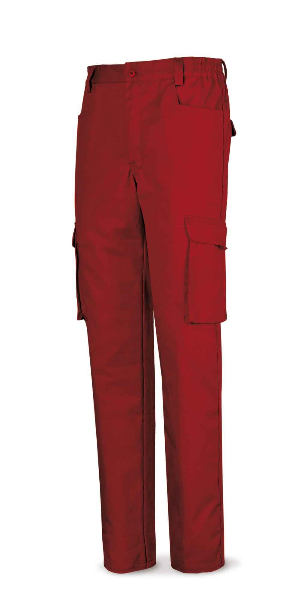 Pantalón rojo poliester/algodón de 245 g. Multibolsillo