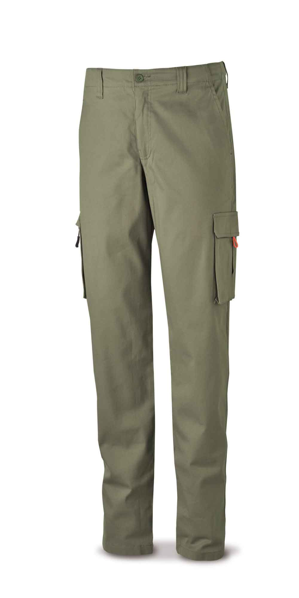 Pantalón Casual fabricado con tejido Stretch de 260 gr/m2. Seis bolsillos: dos en cadera tipo francés, dos en perneras tipo cargo con pliegue al interior y dos traseros. Ajuste a cadera sin elástico adicional con 5 trabillas extra anchas.