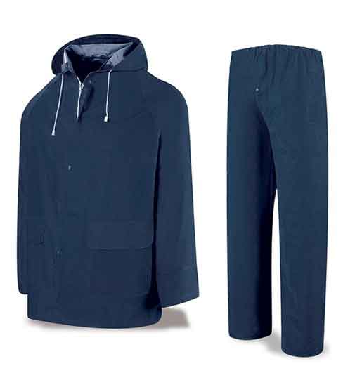 Traje de Agua de PVC de 0,32mm de grosor, compuesto por chaqueta con capucha y pantalón. Costuras termoselladas
