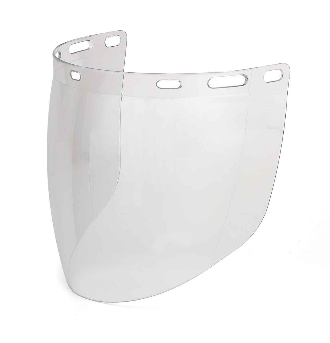 Visor incoloro de policarbonato de alta resistencia mecánica, química y eléctrica. Protege contra impactos de partículas a gran velocidad y a temperaturas extremas de media energía (BT). Contra salpicaduras de líquidos (3). Contra salpicaduras de metales fundidos y sólidos calientes (9). Contra un arco eléctrico de cortocircuito (8). Contra radiaciones UV EN170 (2-1,2). Calidad óptica clase 1. Protección ocular de la pantalla 180º. Visor abatible de 400 mm (ancho) X 205 mm (largo).